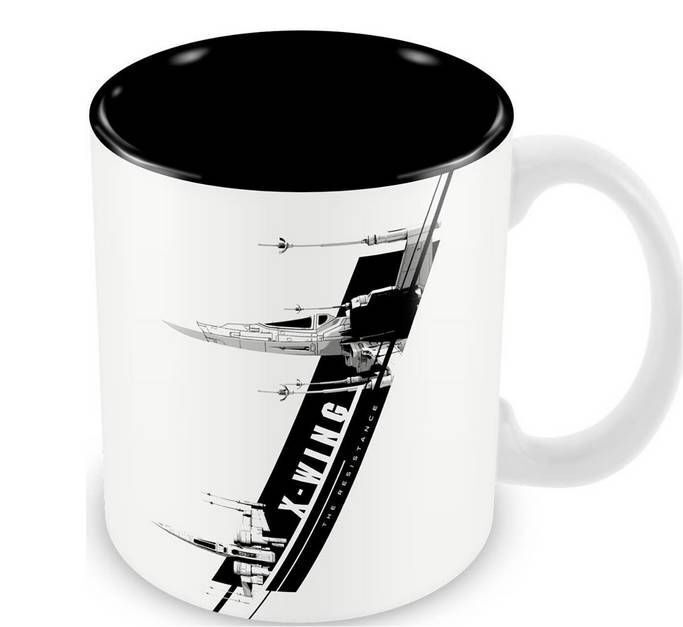 SD Toys presenta las tazas de cerámica basadas en la nueva entrega de la saga "Star Wars: The Force Awakens", ilustradas con imágenes del film y de sus principales personajes. En este modelo se muestra a uno de los nuevos Ala-X de la Resistencia. El interior de la taza es de color negro.