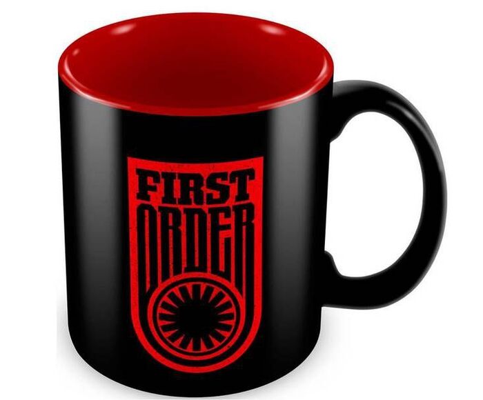 SD Toys presenta las tazas de cerámica basadas en la nueva entrega de la saga "Star Wars: The Force Awakens", ilustradas con imágenes del film y de sus principales personajes. En este modelo se muestra el símbolo y logo de la Primera Orden, los nuevos villanos de la saga. El interior de la taza es de color rojo.