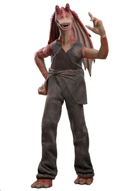 ¡Mesa encantado de verte! Llega Jar Jar Binks en una espectacular figura articulada a escala 1/6 con todo lujo de detalles. Con una altura de 33 cm, esta pieza incluye ropa de tela real y varios accesorios intercambiables para recrear al gungan más carismático de toda Naboo como nunca antes lo habías visto.