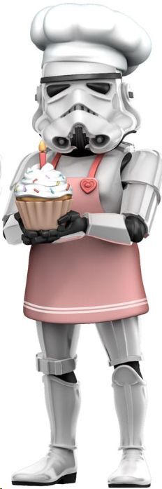 Este Stormtrooper rompe todos los esquemas galácticos con su figura Minix de 12 cm, fusionando el universo de Star Wars con un inesperado toque pastelero. Vestido con un delantal rosa, gorro de chef y sosteniendo un cupcake con vela, esta figura es tan divertida como única.