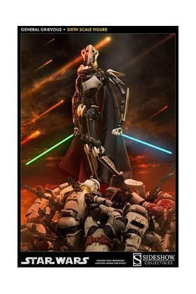 Sideshow Collectibles se enorgullece de presentar por fin la figura del temible General Grievous en su colección Sixth Scale Figure. De un tamaño de 30 cm ha sido fabricada con un elevado nivel de detalle y articulación. Incluye 4 sables laser, 1 vara eléctrica y 1 capa de tela tejida a mano y manos intercambiables.
