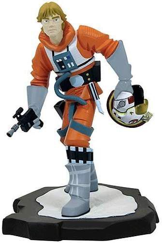 Estatua de Luke vestido con el uniforme naranja de piloto rebelde, y esculpida según el diseño realizado para la serie de animación.