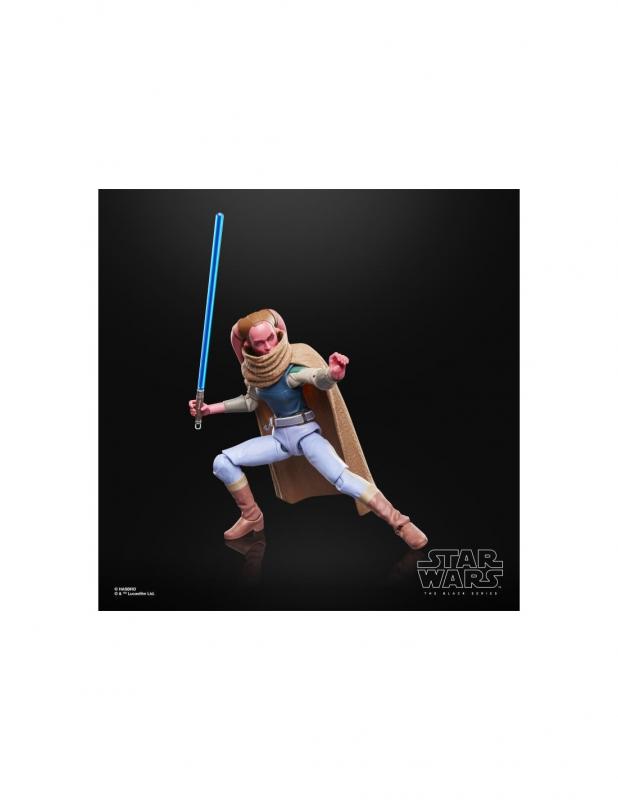 La figura cuenta con múltiples puntos de articulación, permitiendo recrear poses dinámicas y escenas de acción con gran realismo. Incluye un sable de luz azul inspirado en su arma, ideal para completar su presencia en cualquier exposición.