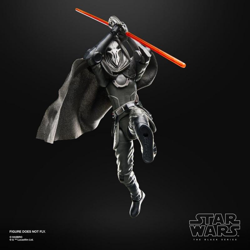 La figura cuenta con múltiples puntos de articulación y una capa de tela que aporta un acabado más realista, permitiendo recrear poses dinámicas y escenas de combate. Incluye un sable de luz doble rojo característico, ideal para completar su estética.