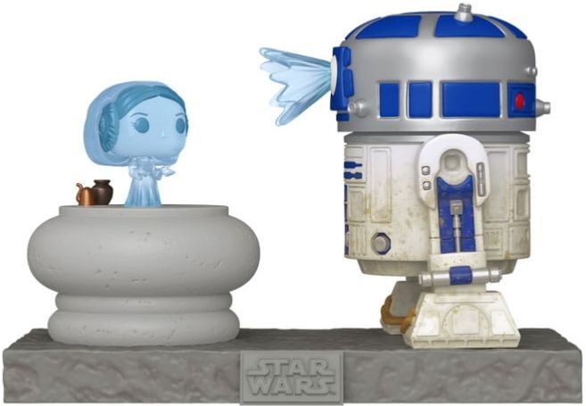 Uno de los momentos más icónicos de Star Wars cobra vida en esta increíble figura Pop! Deluxe protagonizada por R2-D2 y el mensaje holográfico de la Princesa Leia. Con un diseño detallado, este coleccionable captura la escena en la que el pequeño droide proyecta la petición de ayuda de Leia a Obi-Wan Kenobi, un momento clave en la saga galáctica. La base decorada añade un toque extra de realismo a esta emblemática recreación.