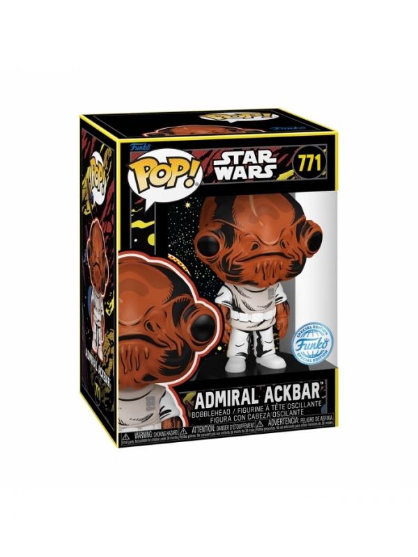 https://comicstores.es/producto/star-wars-pop-vinyl-figura-almirante-ackbar-glow-exclusive-9-cm_588016588016STAR WARS POP! VINYL FIGURA ALMIRANTE ACKBAR (GLOW) (EXCLUSIVE) 9 CMEl almirante Ackbar llega en esta increíble figura Pop! Vinyl exclusiva con efecto Glow, listo para comandar la flota rebelde. Con su inconfundible piel anaranjada y su uniforme blanco detallado, esta versión especial resalta su icónica apariencia dentro del universo de Star Wars. Su característico diseño bobble-head y su base con el logo de la saga lo convierten en una pieza imprescindible para cualquier fan.