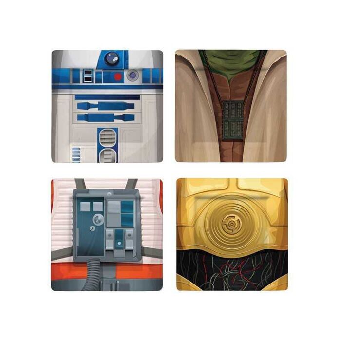 Set de 4 placas con imágenes que recuerdan a los personajes icónicos de la trilogía de Star Wars.