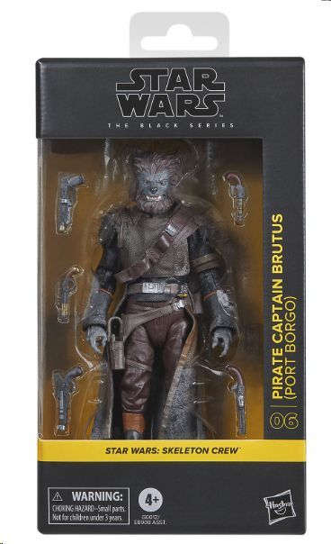 Hasbro presenta, dentro de la colección The Black Series , la figura de Pirate Captain Brutus (Port Borgo) Inspirada en su aparición en la serie de Disney+ Star Wars: Skeleton Crew (o Star Wars: Tripulación Perdida en España), esta figura mide 15 cm y destaca por sus detalles premium y su acabado realista.