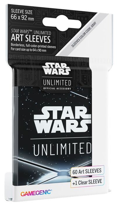 Tamaño optimizado para STAR WARS: UNLIMITED y otros LCGs y juegos de cartas coleccionables. Reverso con textura mate y anverso transparente. Increíble sensación de barajado. 60 fundas ilustradas. + 1 funda transparente (para la carta de líder) en un solo paquete. Sin ácidos, sin PVC.
