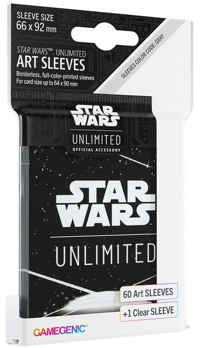Tamaño optimizado para STAR WARS: UNLIMITED y otros LCGs y juegos de cartas coleccionables. Reverso con textura mate y anverso transparente. Increíble sensación de barajado. 60 fundas ilustradas. + 1 funda transparente (para la carta de líder) en un solo paquete. Sin ácidos, sin PVC.