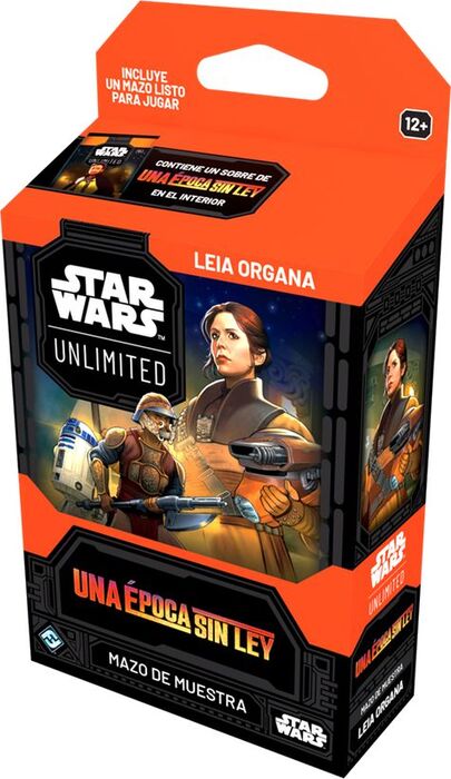 ¡Respalda a tus aliados con Leia Organa en este Mazo de muestra! Dentro de esta caja encontrarás una carta de líder de Leia Organa y un mazo de 50 cartas listo para empezar a jugar sacando el máximo partido de sus puntos fuertes. El mazo contiene cartas de múltiples colecciones, incluidos conjuntos enteros de 4 cartas de rareza especial, así como indicadores de daño, fichas y un sobre de ampliación de Una época sin ley con el que podrás aumentar tu colección.