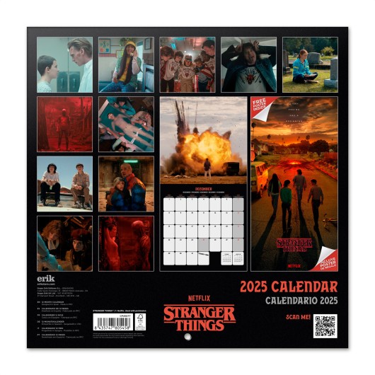 https://comicstores.es/producto/stranger-things-calendario-2025-30x30-cm_578120578120STRANGER THINGS CALENDARIO 2025 30X30 CMDe Enero de 2025 a Diciembre 2025. Mide 29,5 x 29,5 cm, con encuadernación grapada. Contiene 12 imágenes y un póster en su interior. Incluye agujero de 5 mm para colgar en la pared. Las cubiertas son de papel de 250 g/m² estucado mate y laminado, el interior es de papel de 150 g/m² estucado mate. Idiomas: inglés, español, francés, italiano, alemán y portugués. Se presenta en un sobre de cartulina gráfica de 300 g/m² de 30 x 30 cm. https://comicstores.es/imagenes/8435747/843574780545.JPG10.4010.955.000.55