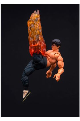 La caja simula la pantalla de combate del videojuego, con marcador de puntos y el clásico diseño retro, lo que convierte esta figura no solo en un objeto de colección, sino también en una auténtica pieza de nostalgia noventera. Incluye varias manos intercambiables y efectos especiales de ataque para recrear los movimientos más icónicos de Fei Long.