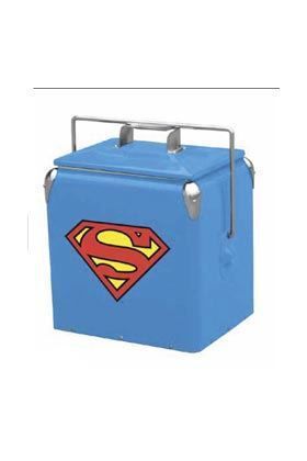 Nevera portatil azul con el logo de Superman basada en el Universo DC. Mide 28x47x23.