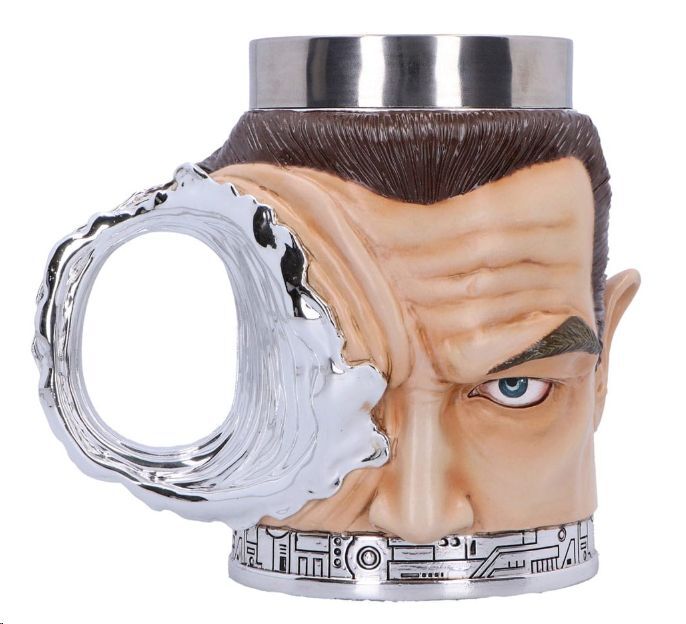 Adéntrate en el mundo de Terminator con esta espectacular Jarra T-1000 , con licencia oficial. Pintada a mano con un impresionante nivel de detalle, esta pieza captura la esencia del letal T-1000, mostrando su icónica transformación de metal líquido y su expresión fría e intimidante.
