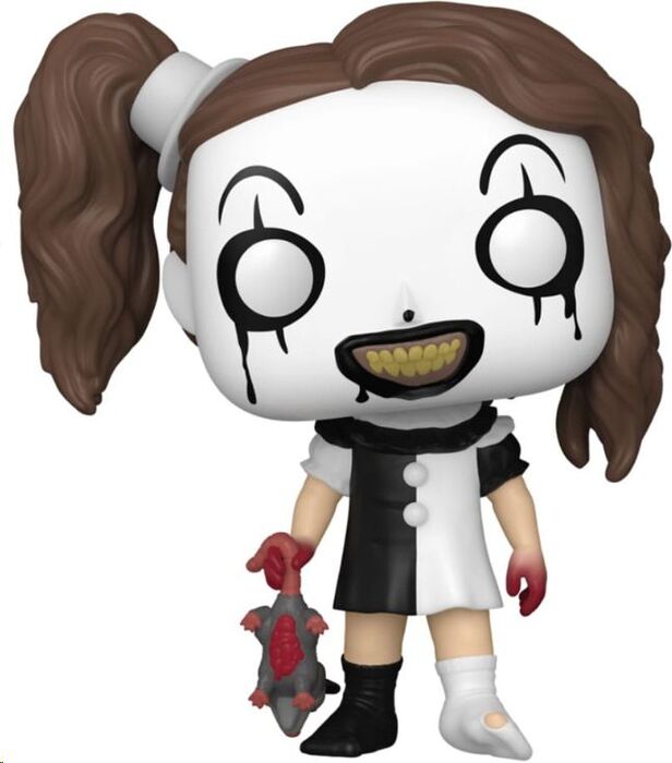 La inquietante Little Pale Girl de *Terrifier* llega en esta figura Pop! Movies de 9 cm, versión Glow-in-the-Dark. Con su escalofriante sonrisa y su distintiva paleta de colores en blanco y negro, esta figura captura a la perfección la esencia perturbadora de uno de los personajes más siniestros del universo de *Terrifier*. Su vestido bicolor y las manchas de sangre añaden un toque extra de terror.