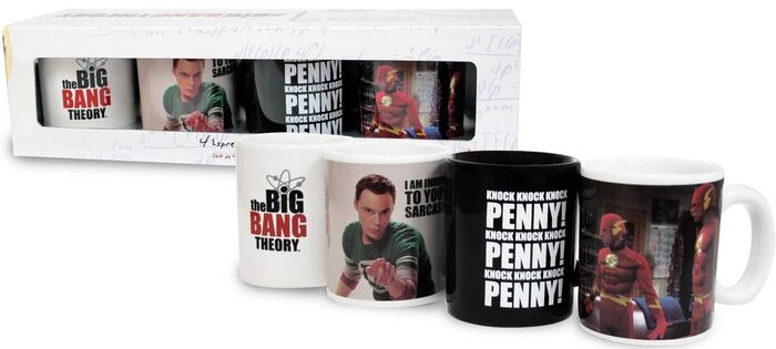 Set de 4 mini tazas de cafe basadas en la serie The Big Bang Theory.