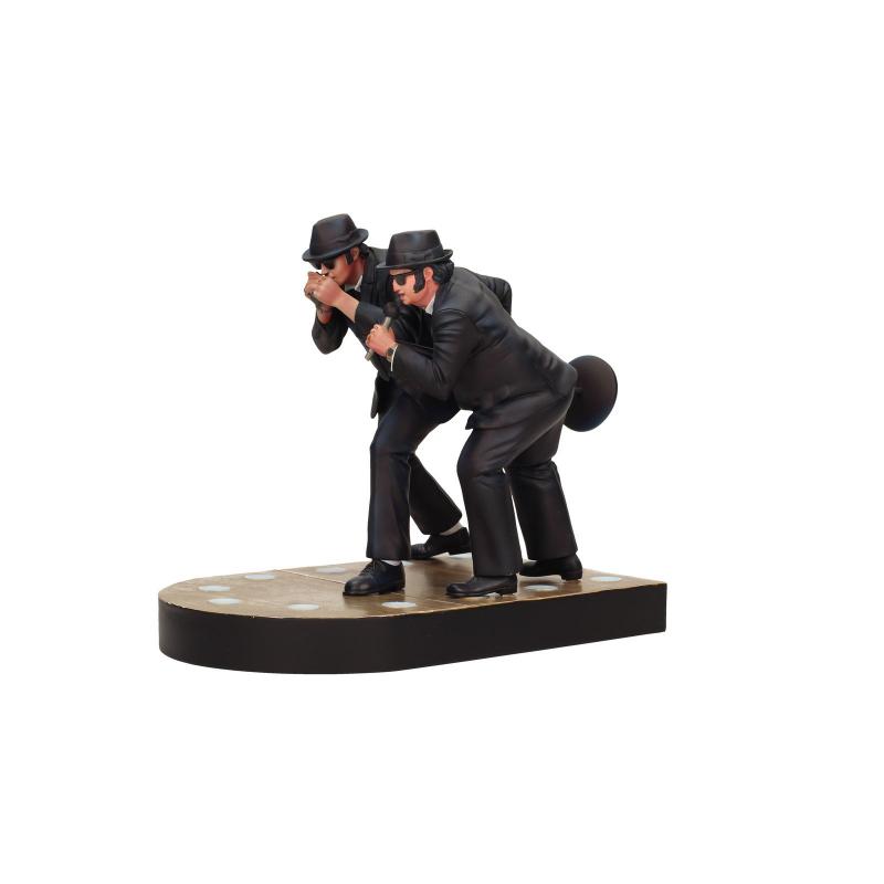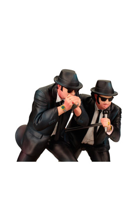 Figura de 18 cm que recrea la escena de los Blues Brothers cantando el mítico tema Everybody Needs Somebody To Love sobre el escenario del salón de baile del hotel Palace mientras les rodea un ejército de policias. Como detalle, las figuras quedan iluminadas por los focos del suelo del escenario.* Las aclamadas figuras de Elwood y Jake, los protagonistas de "The Blues Brothers" ("Granujas a todo ritmo"), film de culto de 1980 dirigido por el no menos mítico John Landis.
