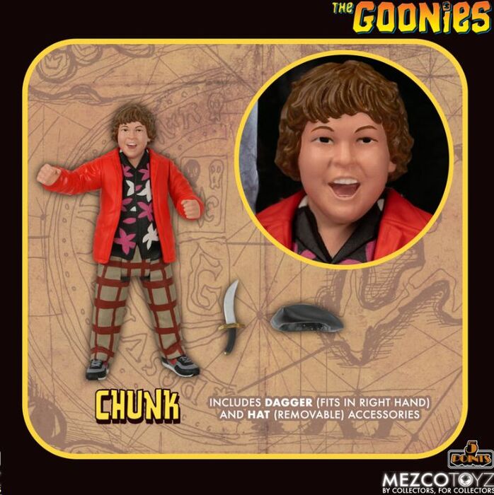 Llega a la colección 5 Points la figura de Chunk, el miembro más torpe, divertido y entrañable de Los Goonies, directamente desde la inolvidable película de 1985 que marcó a generaciones.