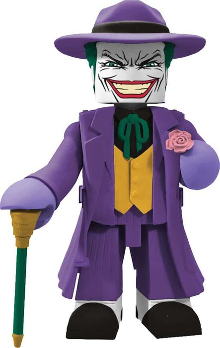 Diamond Select presenta para su colección Vinamates Vinyl Figures la figura del Joker. Esta nueva serie 2 incluye nuevos personajes del Universo DC. En esta ocasión se trata del villano de la ciudad de Gotham y archienemigo de Batman. Se trata de una figura hecha en PVC que mide unos 10 cm de alto.