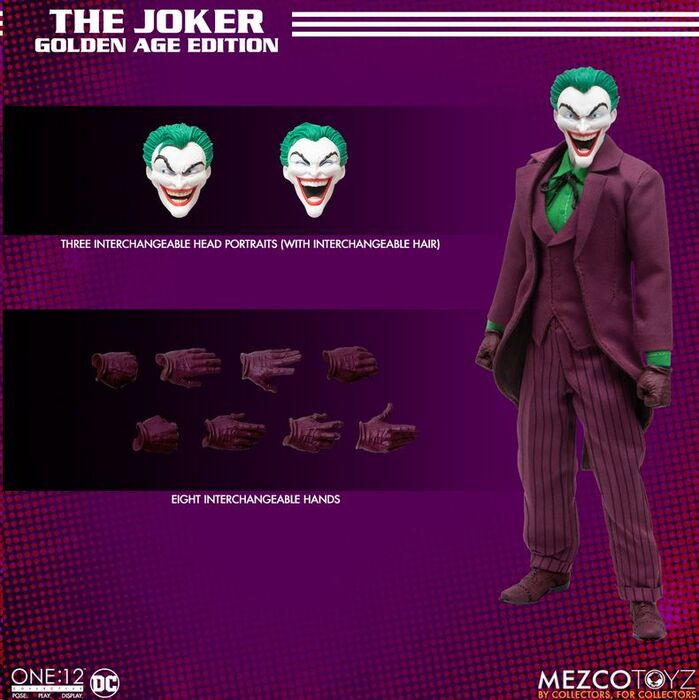 ¡El Príncipe Payaso del Crimen se viste de gala en esta edición digna de los cómics clásicos! Mezco Toyz presenta, dentro de la línea One:12 Collective, la figura de The Joker Golden Age Edition, basada en su aspecto más icónico del universo DC.