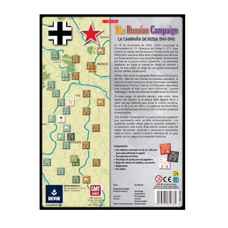 Diseñado por J. R. Edwards, The Russian Campaign es un juego para dos jugadores que representa el terrible enfrentamiento entre soviéticos y alemanes durante la Segunda Guerra Mundial. Los jugadores pueden elegir jugar la campaña completa o un escenario más breve. Esta edición incluye todas las reglas opcionales, variantes y escenarios recopilados hasta la fecha, siendo la edición definitiva de un gran clásico de los juegos de simulación histórica.