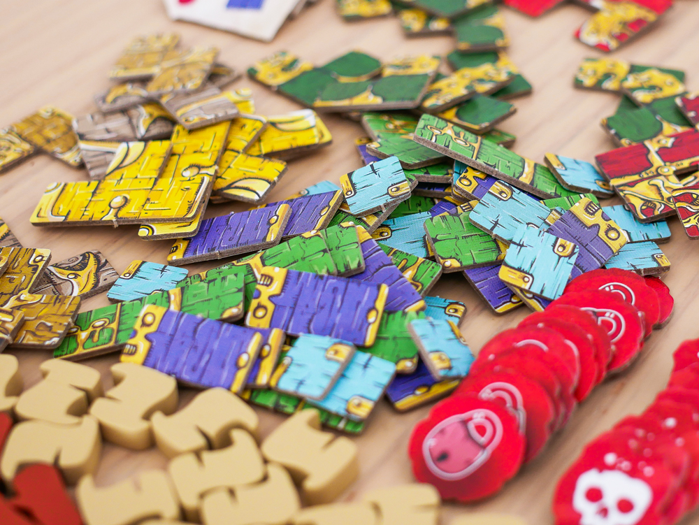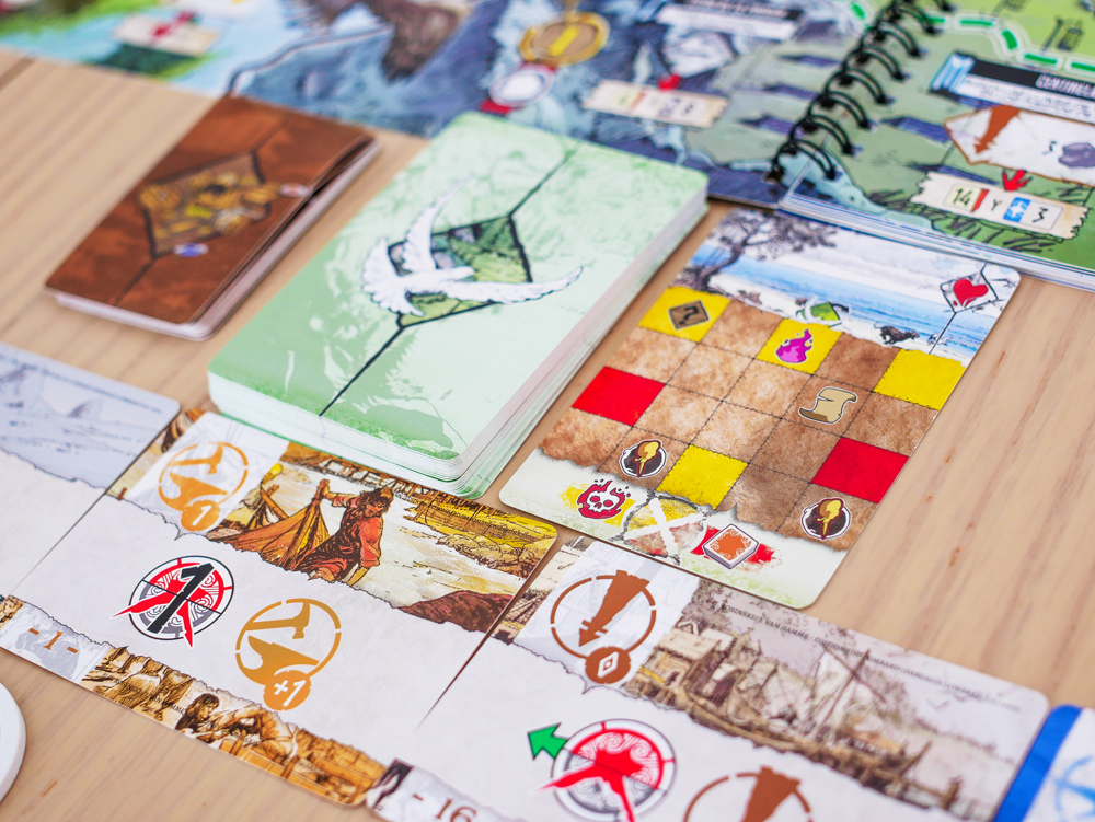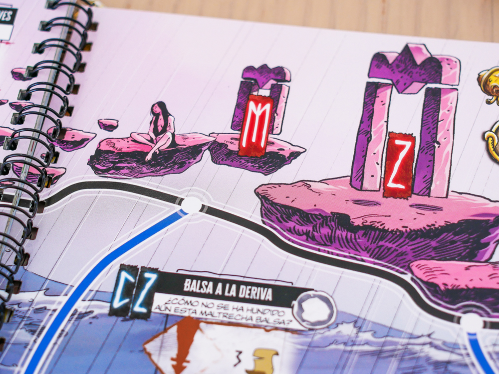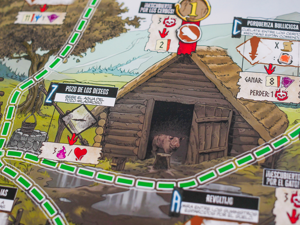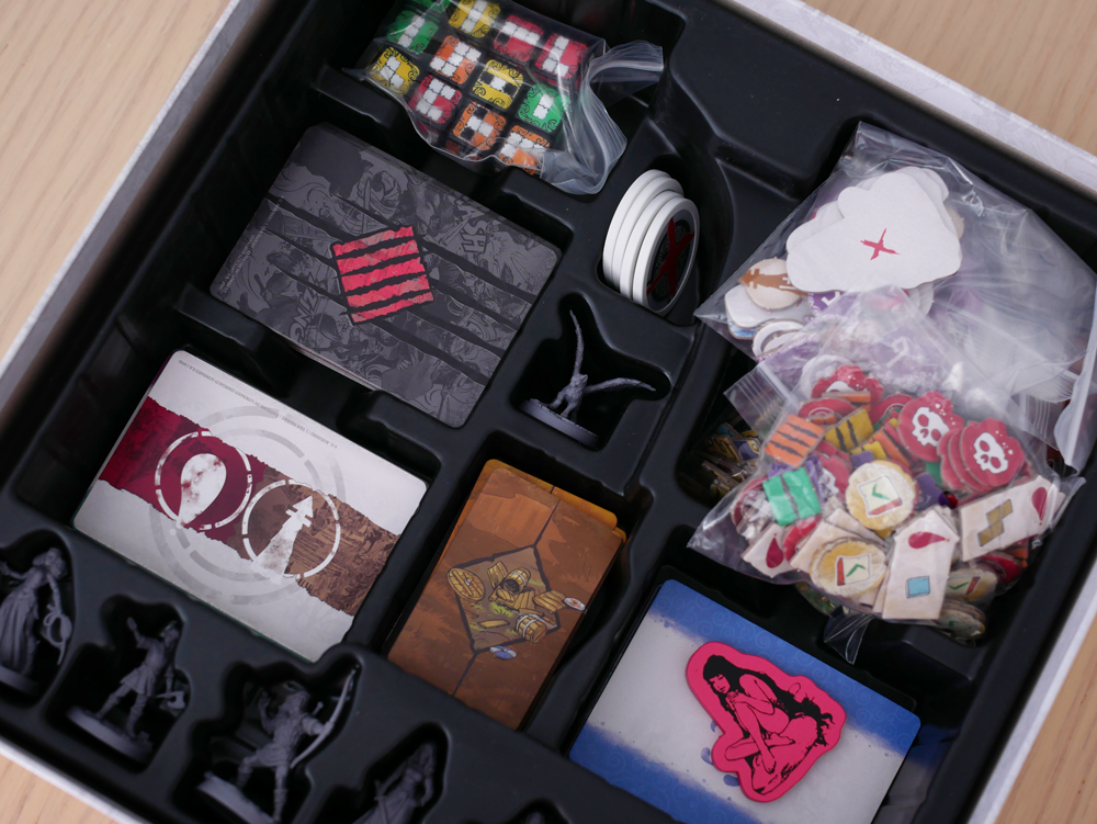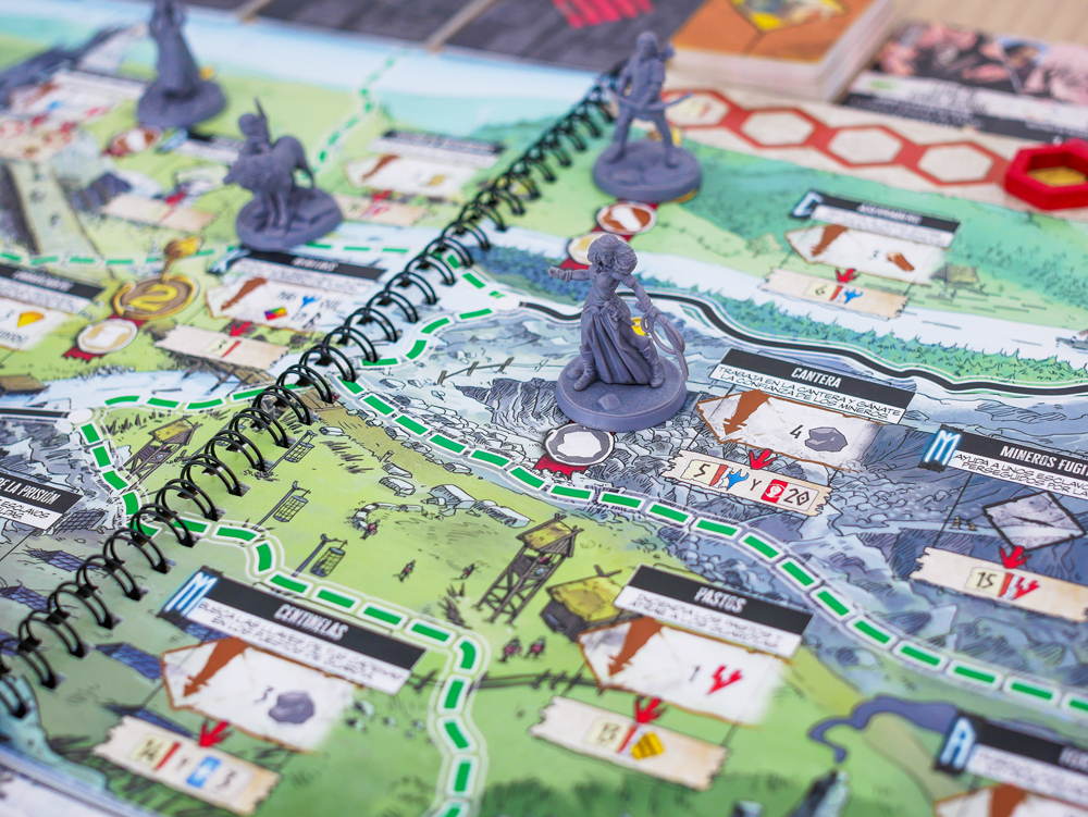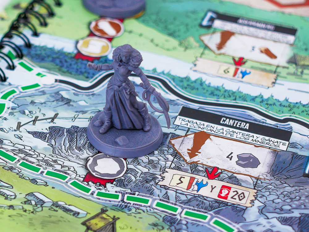 COMPONENTES: 1 Atlas de Aventuras (incluye 7 Aventuras rejugables) 1 Libro de Relatos 4 hojas de Aventura 4 miniaturas 4 tableros de Personaje 4 discos de acción 12 dados personalizados 100+ fichas de madera 150+ cartas de 63×88 mm (Enemigo, Terreno, Acción, Evento ) 40+ cartas de 44×68 mm (Objeto, Descubrimiento ) 250+ fichas y losetas (Herida y Viaje, Enemigo, Bloqueo, Entrada, Amenaza ) 1 reglamento