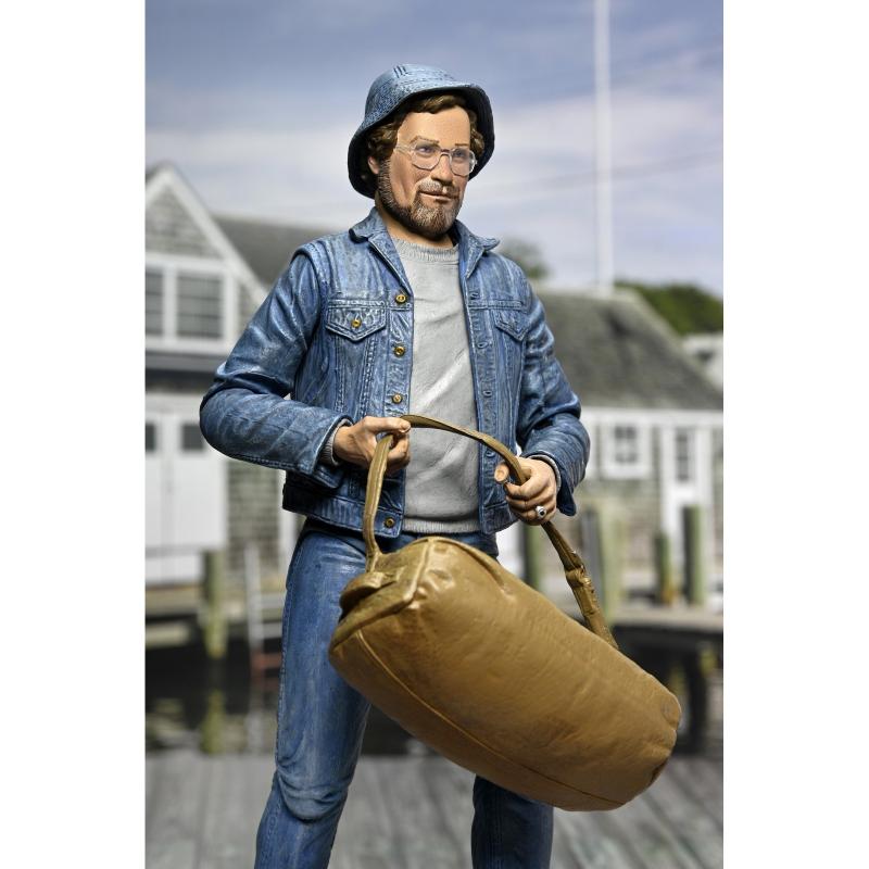 La figura Ultimate de Matt Hooper de Neca se une a la colección Scale Action para celebrar el 50º aniversario de "Tiburón" (Jaws) . Basada en el joven oceanógrafo interpretado por Richard Dreyfuss en la icónica película de 1975, esta detallada figura de 18 cm captura su aspecto con gran fidelidad.