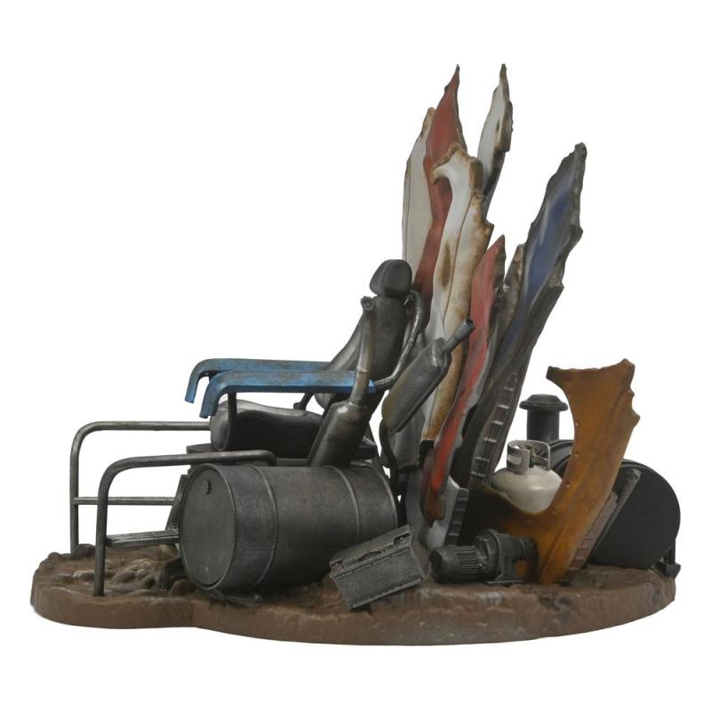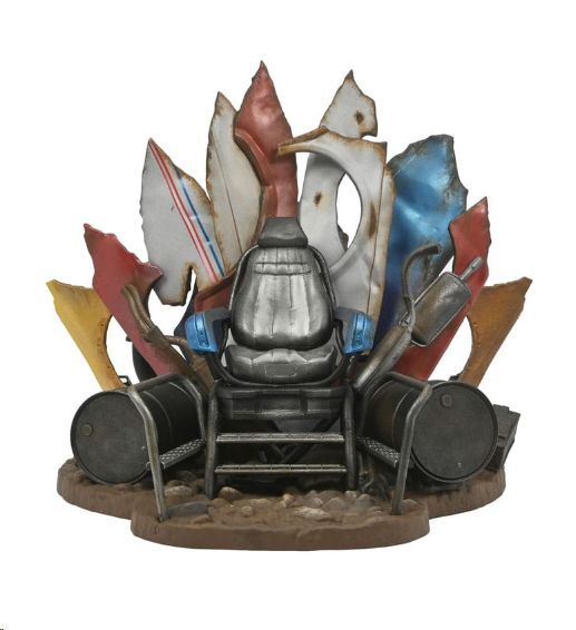 Del clásico Tortugas Ninja 2: Secret of the Ooze llega el impresionante diorama del Trono de Shredder. Este diorama, con licencia oficial, captura la imponente presencia del trono de Shredder, rodeado de piezas de metal retorcidas y escombros que reflejan su dominio y poder. Con un tamaño aproximado de 23 x 23 x 27 cm, este diorama es una pieza central ideal para cualquier colección de Tortugas Ninja.