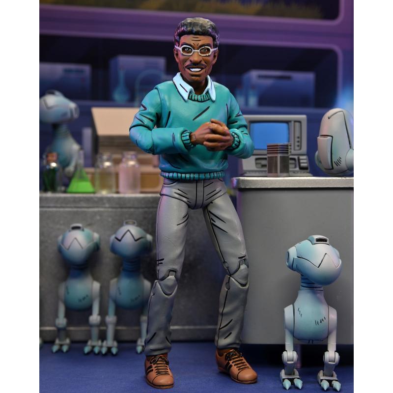 Contiene 1x Mouser, 1x cabeza extra, 2x pares de manos, 1x ordenador y 1x edificio en miniatura. Se presenta en una caja con ventana ilustrada por Kevin Eastman. UNIDADES LIMITADAS. El *Tortugas Ninja Baxter Stockman Scale Action Fig.* se presenta en una elegante caja con ventana, ilustrada por el co-creador de las Tortugas Ninja, Kevin Eastman. Esta presentación no solo protege la figura, sino que también la exhibe de manera atractiva, haciendo que sea un excelente artículo para coleccionistas. Con unidades limitadas disponibles, esta figura es una pieza codiciada para cualquier colección de TMNT, ofreciendo un alto nivel de detalle y una conexión auténtica con el material original.