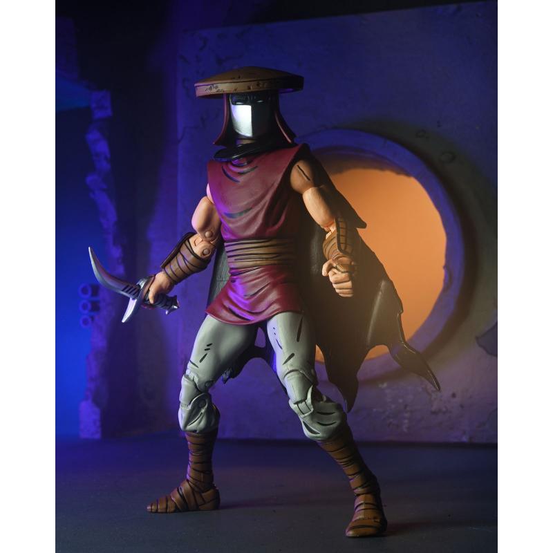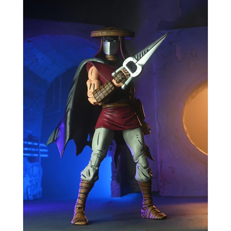 Incluye 1x par de manos, 1xcapa desmontable, 1x katar, 1x naginata y 1x jambiya. Se presenta en una caja con ventana ilustrada por Kevin Eastman. UNIDADES LIMITADAS.