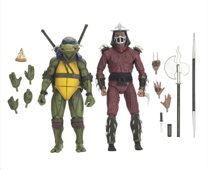 El set incluye dos pares de manos intercambiables y una porción de pizza para Leonardo, mientras que Shredder viene equipado con tres manos extra y un arsenal de ninja , perfectos para armas recrear la icónica batalla en la azotea.
