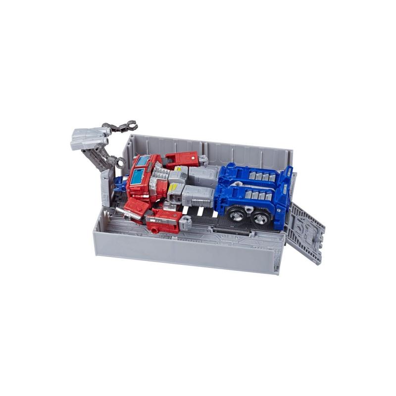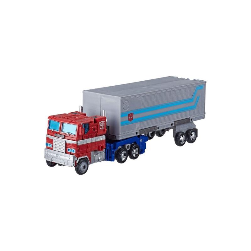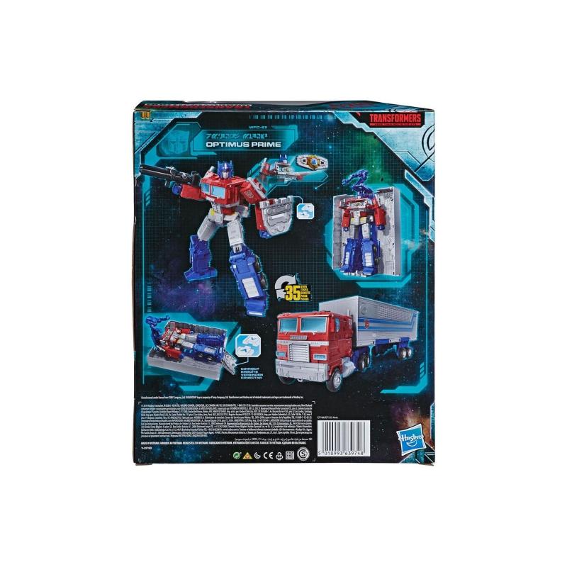 Optimus Prime se puede transformar en su modo de camión clásico en 35 pasos, ofreciendo una experiencia interactiva fiel a la esencia de los Transformers. Los accesorios incluyen su característico bláster, la Matriz de Liderazgo, y un remolque que se convierte en una estación de batalla y una estación de reparación para Optimus Prime, brindando versatilidad para jugar y exhibir la figura.