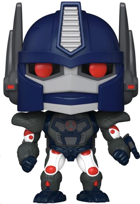 Esta figura Pop! de Optimus Primal, el heroico líder de los Maximals en *Transformers: Beast Wars*, destaca por su imponente diseño que mezcla fuerza salvaje y tecnología avanzada. Su casco azul con detalles plateados y ojos rojos representa su lado robótico, mientras que el cuerpo robusto con brazos peludos y extremidades musculosas refleja su forma alternativa de gorila. La postura firme y decidida refuerza su rol como protector y estratega.