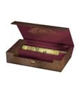Fabricado en cuero sintético de alta calidad y con interior forrado en microfibra, permite guardar hasta 1000 cartas con doble funda o una gran combinación de cajas para mazo, dados y tapetes.
