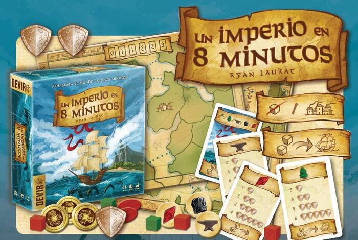 Un imperio en 8 minutos es un juego de control de zonas extremadamente rápido pero repleto de decisiones difíciles. Es muy fácil de aprender y perfecto para cuando solo se dispone de unos minutos para jugar.