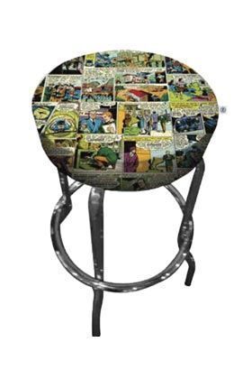 Taburete de metal de 34 x 74 cm decorado con viñetas de comic del universo DC.