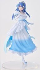 La figura de Awayuki Kokorone, del universo VTuber Legend: How I Went Viral After Forgetting to Turn Off My Stream, destaca por su elegante presencia y su vestido largo en tonos blancos y azules. Su pose delicada, con una ligera inclinación y los brazos extendidos hacia un lado, transmite serenidad y gracia. El diseño del cabello con coletas onduladas completa su estética de ídolo sofisticada y encantadora.