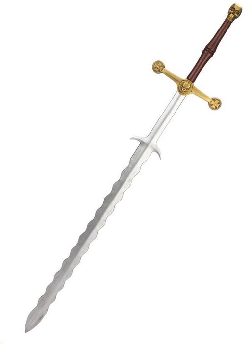 Su diseño imponente de 150 cm de longitud total, con una hoja de 112 cm y un mango ergonómico de 28 cm, ofrece un equilibrio perfecto para recrear escenas épicas o complementar tu atuendo en eventos temáticos.