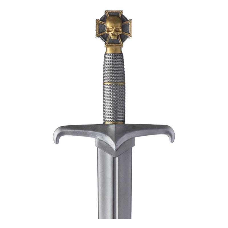 Espada de espuma con licencia oficial de Warhammer, inspirada en el diseño clásico del Imperio de Reikland. Con una longitud total de 89 cm, esta réplica está pensada para los fans que quieren entrenar, hacer cosplay o vivir intensamente sus partidas de rol en vivo. La hoja mide 69 cm y el mango 20 cm, con una empuñadura de 19 cm de ancho que aporta una sujeción cómoda y robusta para todo tipo de movimientos.