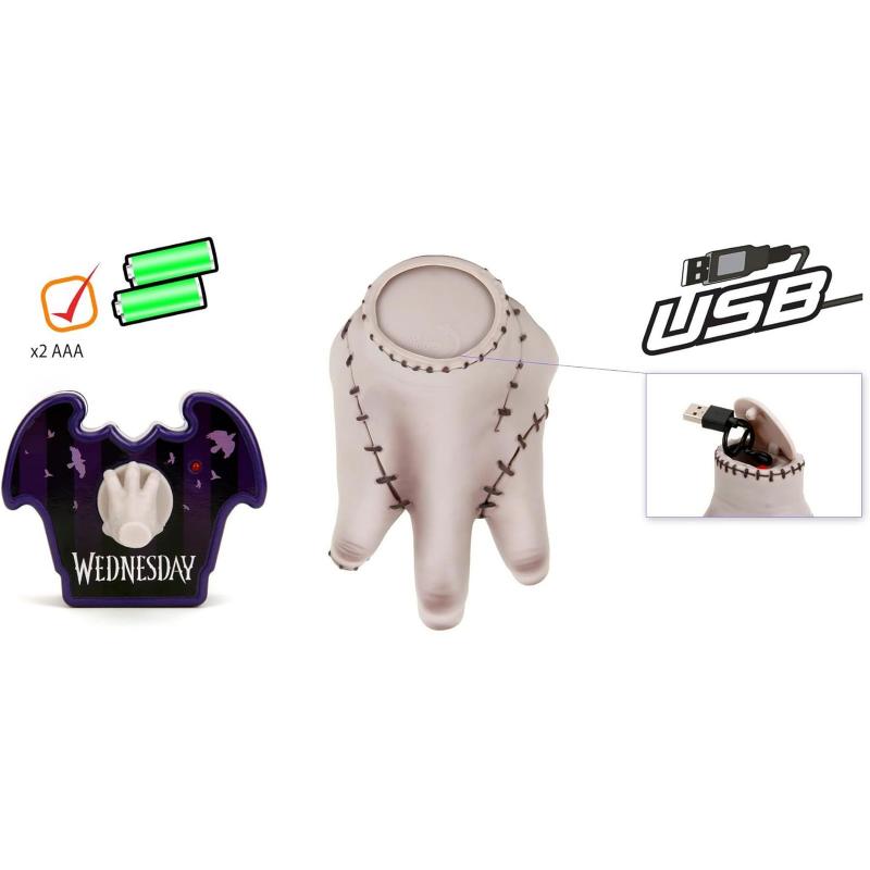 Para garantizar un funcionamiento óptimo, la réplica de Thing requiere solo 2 pilas AAA, las cuales están incluidas, permitiendo a los usuarios empezar a disfrutar de inmediato. Esta característica hace que el juguete sea práctico y fácil de usar, eliminando la necesidad de adquirir baterías adicionales. Como parte de una edición limitada, la figura de Thing de Jada Toys no solo es una adición valiosa para cualquier colección, sino también una pieza exclusiva que destaca por su diseño detallado y su funcionalidad interactiva. Ideal para exhibir en vitrinas o para jugar, esta réplica de radiocontrol de Thing representa una inversión duradera para los aficionados más apasionados de "Wednesday" y de los juguetes de alta calidad.