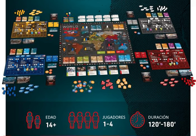 Diseñado para 1 a 4 personas, con partidas de 45 a 80 minutos y recomendado a partir de 10 años, World Order ofrece una experiencia estratégica intensa y accesible, ideal para quienes disfrutan de los juegos con profundidad táctica y temática actual.