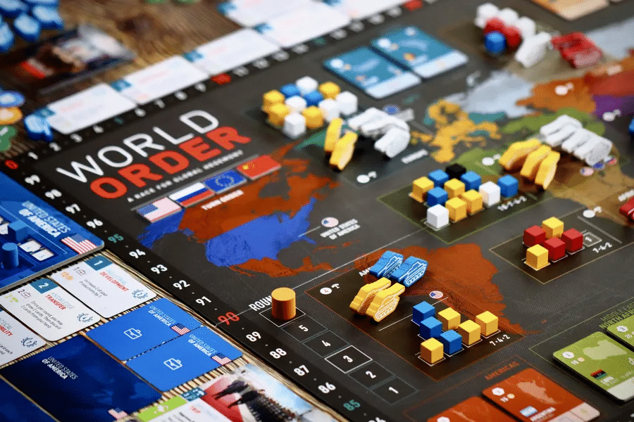 Adéntrate en el complejo tablero de la geopolítica con World Order, un juego de mesa que combina construcción de mazos y control de áreas para recrear las tensiones y alianzas de las relaciones internacionales. Cada partida te sitúa al frente de una gran potencia mundial, tomando decisiones estratégicas que marcarán el rumbo del planeta.