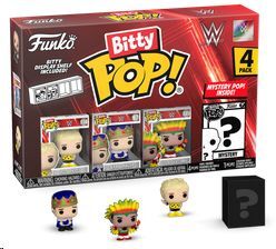 ¡Prepárate para la emoción del WWE Wrestling con el pack de 4 figuras Bitty Pop! Vinyl! Este set incluye una figura del legendario Dusty Rhodes, junto con otras dos figuras del apasionante mundo del wrestling de la WWE, además de una figura misteriosa adicional, ¡sumando un total de 4 figuras!