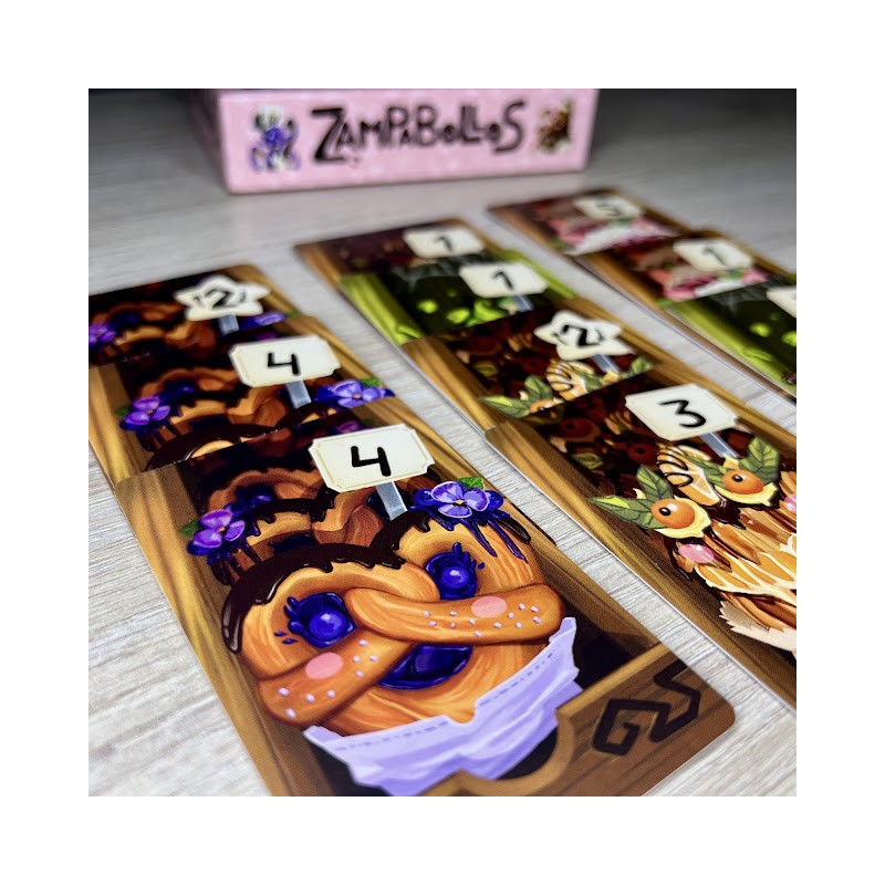 Zampabollos es un juego de cartas para toda la familia, apto para 2 a 5 jugadores a partir de 6 años, donde los participantes intentan conseguir la mayor cantidad de puntos "comiéndose" mazos de bollos.